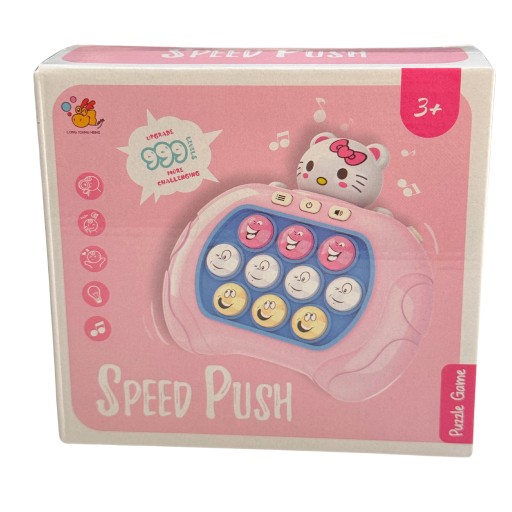 ⚡️Na konsoli podświetlają się nam losowe gumowe bubble, które musimy zdążyć nacisnąć przed upływem ustawionego trybu czasowego, może być on szybszy i wolniejszy.