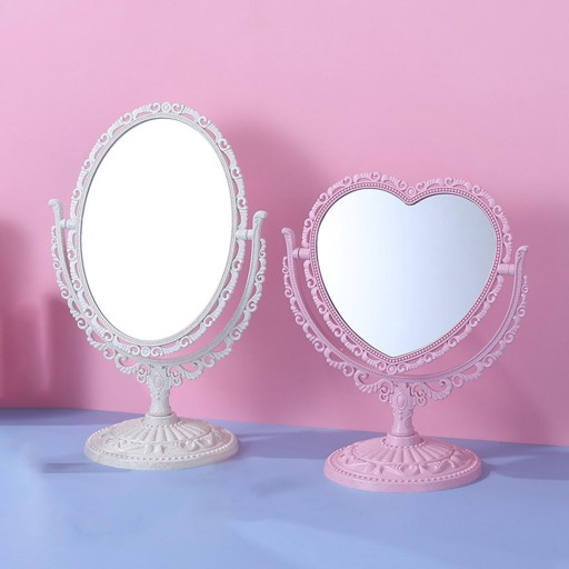 Lusterko do makijażu w stylu retro: powierzchnia lustra do makijażu w stylu europejskim, podwójne lustro, przezroczysta powierzchnia lustra, obraz nie jest zdeformowany.