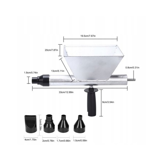 Maszyna do fugowania wskazującego automatyczne narzędzie do zapraw zaprawy przenośne urządzenie do spoinowania spoinowania z 4 dyszami automatyczna cegła Zadaj pytanieOpis:Port ładowania w kształcie lejka przyjmuje konstrukcję w kształcie lejka, która jest wygodna do ładowania i szybko poprawia wydajność pracy.Ogon przyjmuje oszczędzającą pracę konstrukcję łożyska, która znacznie poprawia stabilność pracy i wydajność rozładowania.Wyposażony w 4 zdejmowane dysze, gwintowany odpinany projekt, płaska dysza, okrągła dysza, łatwy w użyciu, różne dysze mogą być używane według różnych scenariuszy.Bardzo wygodny do natryskiwania w zamkniętych miejscach, szybka i prosta aplikacja tynku, zaprawy i tynku.Możesz użyć automatycznej maszyny uszczelniającej ze sprężarki powietrza, zaprawy natryskowej, stiuku, stiuku, małej drabiny natryskowej, mieszanki gruntowej i innych.Cechy:Nazwa: automatyczna maszyna uszczelniającaMateriał: ze stali stopowejRozmiar lejka: 19.5*20*13cmDługość rękojeści: 9 cmRozmiar dyszy: 15mm, 17mm, 20mm, 40*10mmLista produktów:1 * automatyczna maszyna uszczelniająca (bez wiertarka ręczna)4 * alternatywnych dysze
