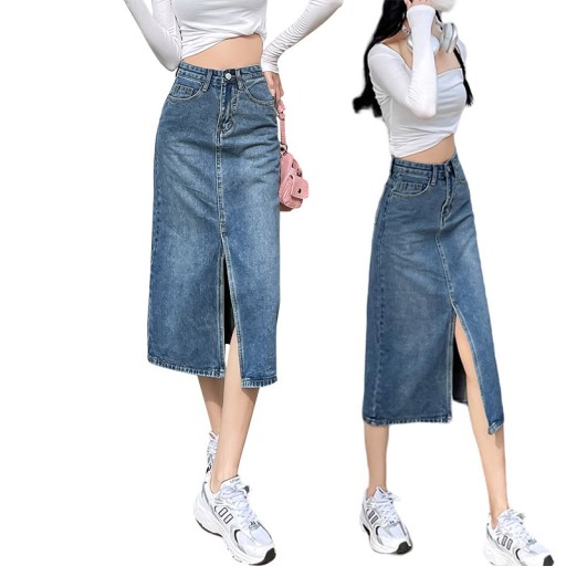 Tagi ofertowe:Spódnica spódnica z wysokim stanem prosta dżinsowa spódnica damska rozcięta widelec niebieska długa obcisła ołówkowa spódnica dżinsowa.