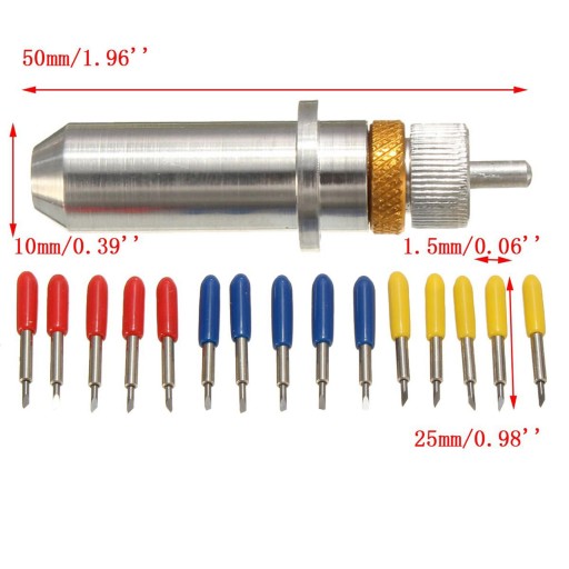 It is the universal computerized lettering blade, suitable for Explore Air 2/Air/Maker/Expression, it has 3 sizes, different degrees of replacement blades to meet your needs for different crafts.