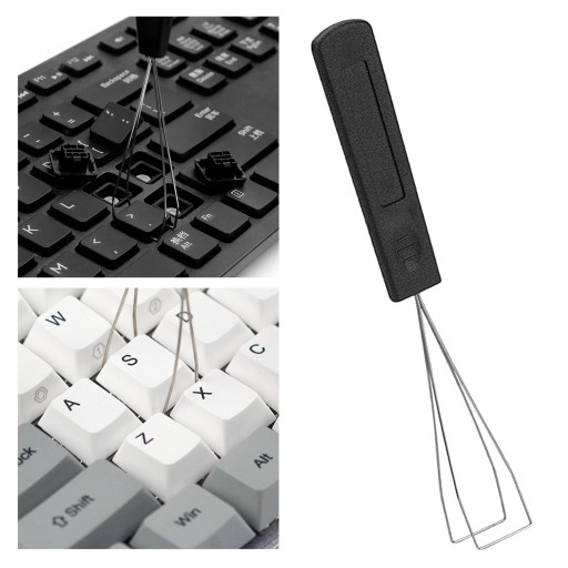 Narzędzie do usuwania nasadek klawiszy jest wykonane z wysokiej jakości stali nierdzewnej, która jest bardziej elastyczna i wystarczająco cieńsza, aby przejść przez przestrzenie między klawiszami.