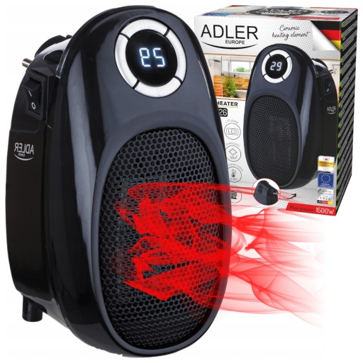 Ogrzewacz Adler 7726 o mocy maksymalnej 1500W, mimo niewielkich rozmiarów, potrafi skutecznie nagrzać pomieszczenie o powierzchni nawet 32 m2 Dzięki kompaktowej wielkości oraz brakowi zewnętrznych kabli łatwo go przechowywać (np w szufladzie) Niezastąpiony w przypadku awarii ogrzewania lub konieczności dogrzania zbyt chłodnego pokoju Programator pozwala na ustawienie długości (1-12 godzin) działania i regulację temperatury w zakresie od 15 do 35 stopni Urządzenie posiada czytelny, biały cyfrowy wyświetlacz LED