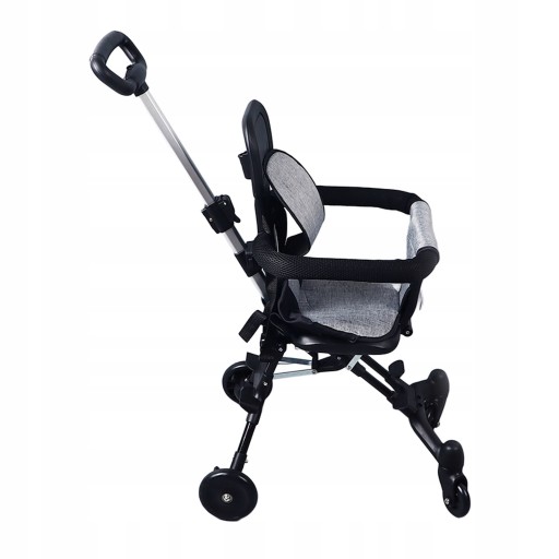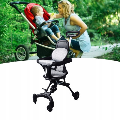 Wózek dziecięcy 4 koła Tylny podwójny hamulec Regulacja wysokości Składany wózek dziecięcy z miękką poduszką Szary