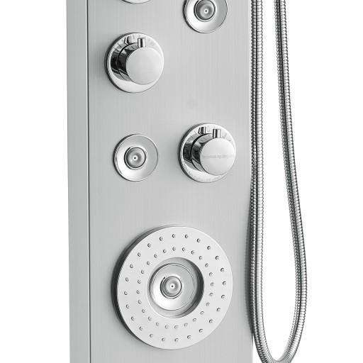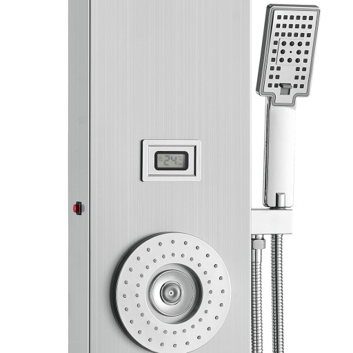 Nasz panel prysznicowy wykonany jest z pogrubionej płyty ze stali nierdzewnej 304, która zapewnia trwałość i higienę, jest odporna na korozję i łatwa do czyszczenia. Mosiężny zawór mieszający wodę i przeciwwybuchowa podwójna rura z PCV wraz z plecioną dyszą wykonaną ze stali nierdzewnej 304 zapewniają solidny i szczelny system.