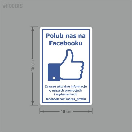 Po zakupie prosimy podać tekst, nazwę profilu lub jego adres do wstawienia w miejsce “facebook.com/adres_profilu” na naklejce.