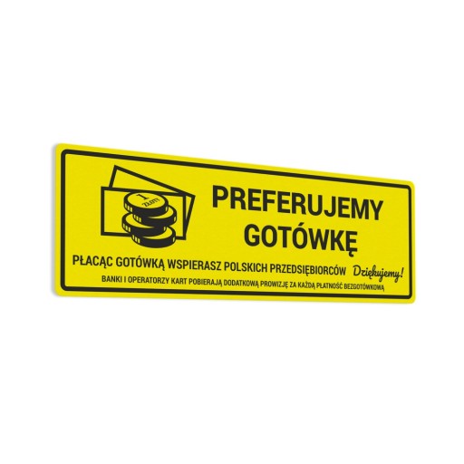 Naklejka "Preferujemy Gotówkę" drukowana i wycinana ploterowo na zamówienie z wysokiej jakości folii firmy ORACAL.