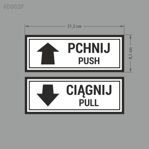 Komplet naklejek (1 naklejka “Pchnij” i 1 naklejka “Ciągnij”) drukowanych i wycinanych ploterowo z wysokiej jakości folii firmy ORACAL.