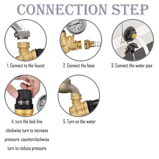 1. Precise Water Pressure Control: RV Water Pressure Regulator with Gauge is designed to provide precise control over the water pressure in your RV or camper. RV Water Pressure Requlator with Gauge uses a balanced system with a spring and diaphragm to ensure consistent pressure levels .2. Hose Regulator of Brass Lead-Free Construction: This IRV Pressure Regulator water Crafted from high-quality lead-free brass, this regulator is not only durable but also safe for use with potable water.3. Adjustable with Gauge: The RV Water Pressure Regulator With Gauge features an adjustable design, allowing you to fine-tune the water pressure to your desired level (0 psi to160 psi) . The Water Pressure Regulator even comes with a gauge for easy monitoring.4. RV Pressure Regulator Water Efficient Water Flow: This Camping Water Filter When water is flowing, the spring opens the flow passage, ensuring an efficient and steady supply of water. The regulator responds to changes in demand, guaranteeing optimal flow rates.5. Water Hose Protector Easy Installation and Temperature Resistant: Donepart Pressure Regulator For RV Water Hose Installing the regulator is a breeze. Simply connect it to your water source and RV's water inlet. It's compatible with a wide range of temperatures (from 14°F to 200°F) and can handle a maximum pressure of 160 psi, making it suitable for various camping conditions.Specifications:Material: lead-free brassConnection: ThreadNominal diameter: DN20Structure: straight-throughPressure environment: atmospheric pressureOperating temperature: 14F ~ 200FThread: 3/4" NH threadDirection of flow: Unidirectional