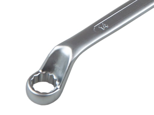 Odchylona płaszczyzna robocza klucza ułatwia manewrowanie i łatwiejsze dotarcie do śrub położonych w trudno dostępnych miejscach. Satynowana powierzchnia klucza zmniejsza poślizg i minimalizuje ryzyko wyślizgnięcia się z brudnej dłoni.