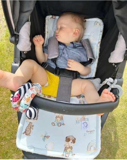 Wkładka pasuje do wszystkich wózków spacerowych z możliwością wypięcia pasów.