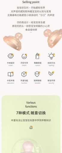 - The baby bottle is designed to give the baby a sense of security, and the soft nipple soothes the baby's fidgety mood.