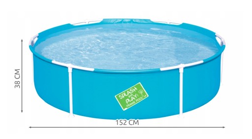 Basen posiada metalowy stelaż, który zapewnia stabilność całej konstrukcji. Ścianki basenu wykonane są z trójwarstwowego trwałego materiału - poliestru oraz PVC. Pojemność przy napełnieniu 90% = 580 litrów (153 galony). BASEN jest przeznaczony dla dzieci powyżej 3 roku życia i posiada certyfikat CE.