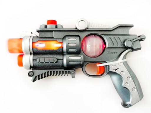 Zabawka w całości wykonana z plastiku dobrej jakości. Każdy mały i trochę starszy chłopiec uwielbia strzelanie. Pistolet z dźwiękami będzie doskonałą zabawką na tym etapie dorastania. Kosmiczno - wojskowy design dodatkowo uatrakcyjnia zabawkę.