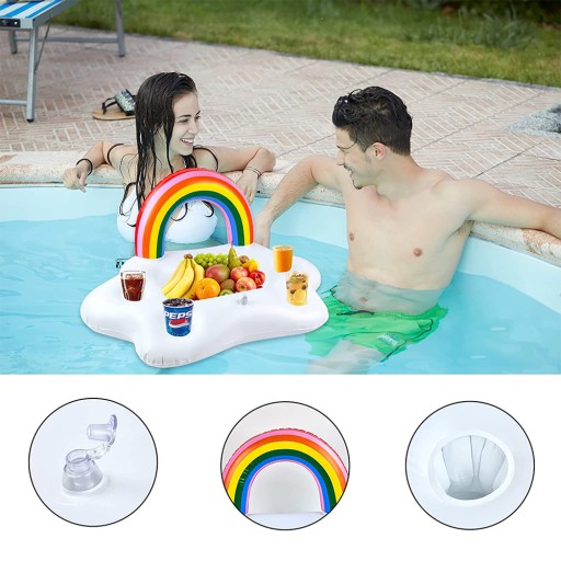 🌈🍹Tęczowy uchwyt na napoje do basenu: tęczowy uchwyt na napoje do basenu sprawia, że ten nadmuchiwany uchwyt na napoje bardziej przyciąga wzrok. Bar przy basenie jest idealny na imprezy przy basenie, imprezy na plaży i ciesz się latem.