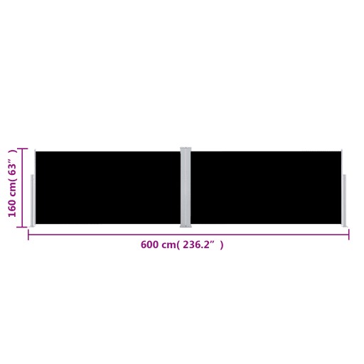 Zwijana markiza boczna, czarna, 160 x 600 cm