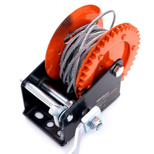 Wyciągarka linowa marki Kraft&Dele z napędem ręcznym korbowym do transportowania ładunków, stalowa lina