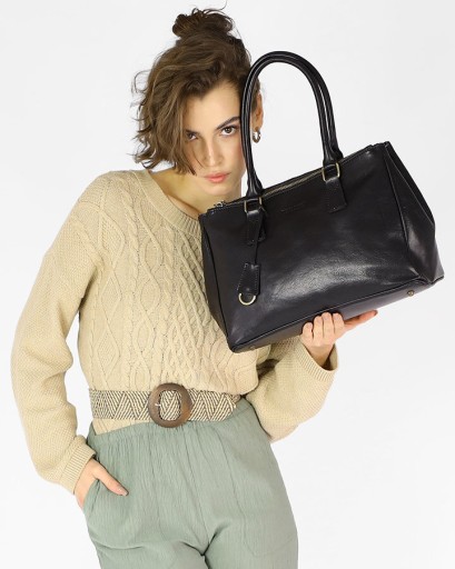 Poznaj naszą wyjątkową, dwukomorową torebkę skórzaną, która łączy w sobie włoski styl z praktycznym designem. Nie musisz już wybierać między funkcjonalnością, a stylem. Torebka kuferek czarna wykonana z najwyższej jakości skóry licowej, to nie tylko modny dodatek, ale również trwały towarzysz na co dzień. Odkryj piękno prawdziwej skóry prosto z Toskanii, emanujące elegancją i wyrafinowaniem. Ta czarna torebka kuferek to połączenie luksusu, wygody i elegancji, stworzone przez doświadczonych rzemieślników, mistrzów swojego fachu. Wykonanie z naturalnej skóry najwyższej jakości sprawia, że ta torebka emanuje perfekcyjnym włoskim stylem i elegancją, a subtelny, szlachetny zapach skóry, zapewnia, że noszenie tej torebki staje się zmysłowym doznaniem.