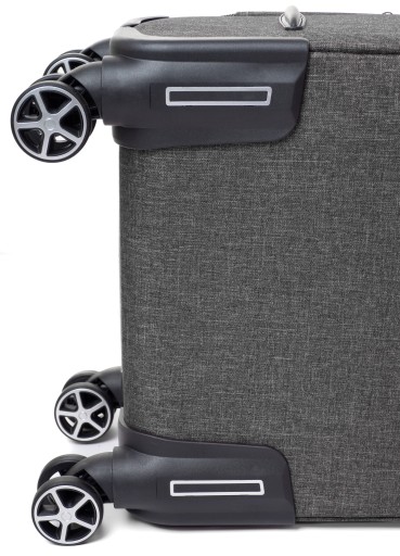 Wytrzymała i stylowa walizka materiałowa wykonana z wytrzymałego, nieprzemakalnego materiału cordura 9600D, odporna na zużycie i rozdarcia. Wyposażona w kauczukowe, obrotowe i łożyskowane kółka, które zapewniają płynną jazdę nawet po nierównym terenie. Wygodę podczas podróży zapewni również bardzo trwały duraluminiowy stelaż wbudowany w całą szerokość walizki z możliwością regulowania wysokości wysuwanej rączki. Walizka posiada jaskrawe detale, które zapewniają jej widoczność oraz elementy ze skóry, które dodają elegancji. Walizka posiada dwa materiałowe uchwyty, dodatkowo zabezpieczone nitami, co pozwala na przenoszenie ciężkich bagaży. Dodatkowy zamek w walizce umożliwia poszerzenie jej o 5cm, co pozwoli na większą pakowność.