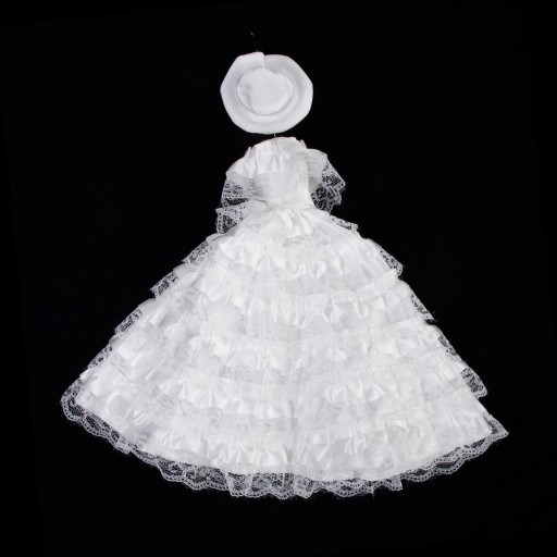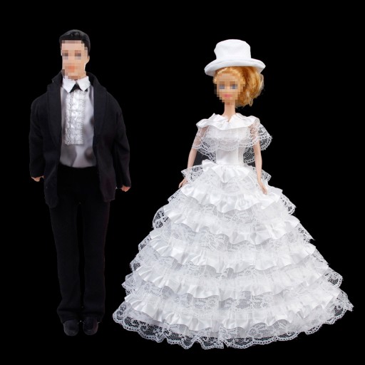 Biała Suknia ślubna Dla Nowożeńców Koronkowa W Kwiaty Z Kapeluszem Dla Lalek