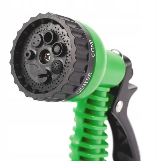 Wąż ogrodowy posiada pistolet obsługujący 7 funkcji: