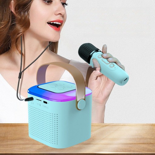 Dwuczęściowy, bezprzewodowy zestaw do karaoke mikrofon + głośnik. To świetlne źródło rozrywki i towarzysz imprez.