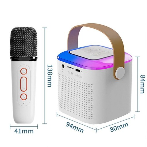 Dwuczęściowy, bezprzewodowy zestaw do karaoke mikrofon + głośnik. To świetlne źródło rozrywki i towarzysz imprez.