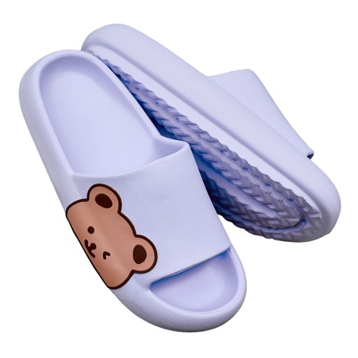 Świetne damskie gumowe klapki na płaskiej podeszwie, paseczek zdobiony uroczym misiem. Idealny wybór na wakacje!