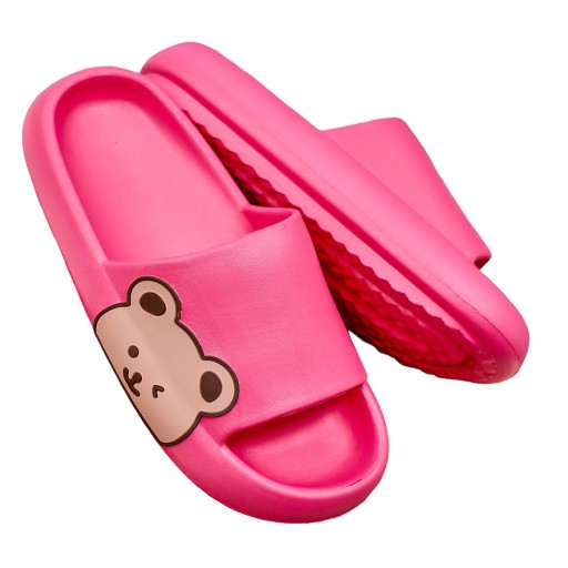 Świetne damskie gumowe klapki na płaskiej podeszwie, paseczek zdobiony uroczym misiem. Idealny wybór na wakacje!