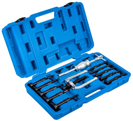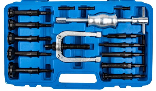 Profesjonalny ściągacz bezwładnościowy do łożysk o zakresie roboczym 8-58 mm. Wykonany z wysokogatunkowej wzmacnianej stali. Idealny do każdego warsztatu profesjonalnego. Końcówkę umieszczamy w łożysku, kręcąc bolec rozpycha końcówkę blokując się w gnieździe łożyska. Młotkiem wybijamy łożysko.