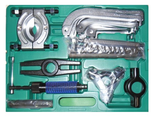 Ściągacz hydrauliczny. Kpl. uchwytów i łap do ściągacza (2-ramiennego i 3-ramiennego) - długość łap 4", 6", 8". Kpl. przedłużek. Odklejacz do łożysk 75-105 mm.