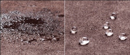Impregnatem, który chroni przed uporczywymi plamami (szczególnie z płynów ustrojowych, wina, kawy, napojów) – tzw. plamy kolorowe. Impregnat ułatwia czyszczenie plam dzięki temu zminimalizowany jest procesem „tarcia” dlatego tkanina zachowuje swoje właściwości i nie ulega procesom mechacenia.
