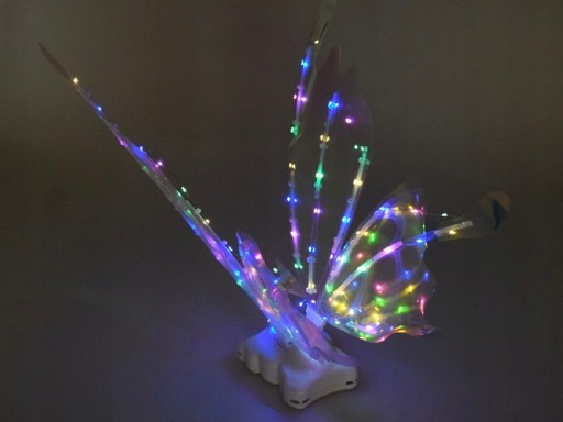 Kształtem przypominają olbrzymie skrzydła motyla, które w zależności od kąta padania światła - mienią się na wiele kolorów. Do podkreślenia efektu zostały wyposażone w oświetlenie led, co daje niesamowity efekt! Małe dziewczynki mogą poczuć się jak prawdziwe wróżki z krainy magii i czarów.