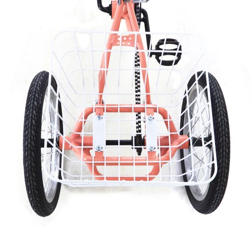 Koła antypoślizgowe i odporne na zużycie: Teksturowany bieżnik, 16-calowa aluminiowa obręcz, wielowarstwowa konstrukcja i duża szerokość przyłożenia zapewniają rowerowi trójkołowemu dobre odprowadzanie wody, sprawiają, że pasuje on do większości dróg i może skutecznie zmniejszyć opór toczenia, poprawić przyczepność i odporność na zużycie oraz pomóc w płynnej jeździe.