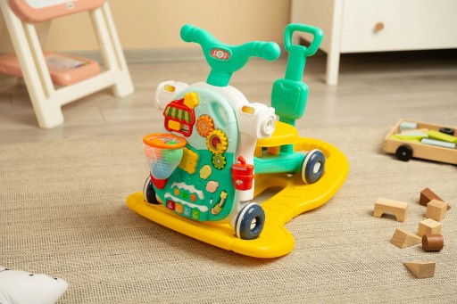 ⭐ Pojazd na biegunach: Dzięki tej opcji, chodzik zamienia się w kolorowy pojazd na biegunach. Twoje dziecko będzie cieszyć się dynamiczną zabawą, poruszając się do przodu i do tyłu, co wpływa na rozwój motoryczny i wyobraźnię.
