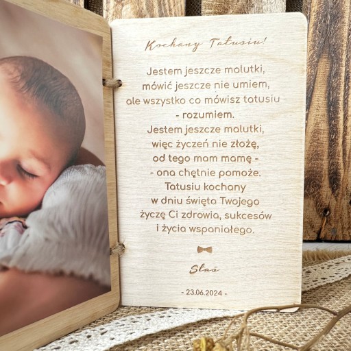 ❤️ Kartka drewniana ze zdjęciem na Dzień Taty.