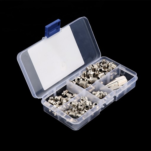 Pakiet 60 zestawów asortymentowych złączek smarowniczych, który służy do podawania środka smarnego do łożyska.