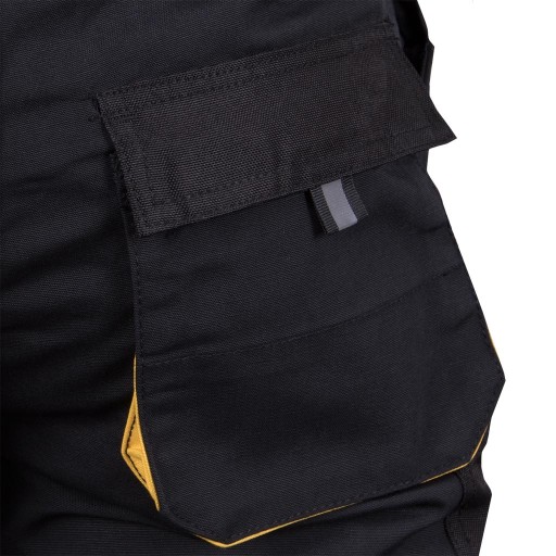 - liczne kieszenie m.in. dwie na klatce piersiowej zapinane na rzep, dwie po bokach, z tyłu dwie zapinane na rzep, na nogawce na narzędzia oraz kieszeń boczna zapinana na rzep