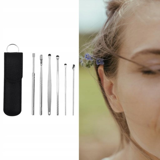 6 sztuk patyczków do uszu (spiralny patyczek do uszu, wiosenny patyczek do uszu, okrągły patyczek do uszu, płaski uchwyt patyczek do uszu, mały patyczek do uszu, duża łyżka do uszu w kształcie) (2 sztuki)