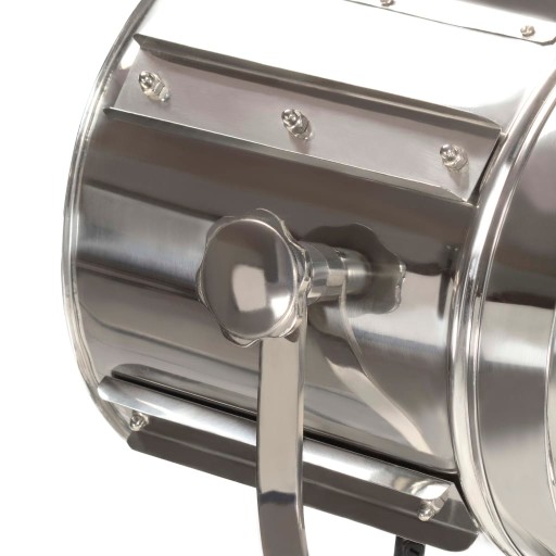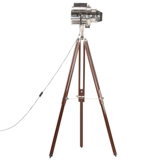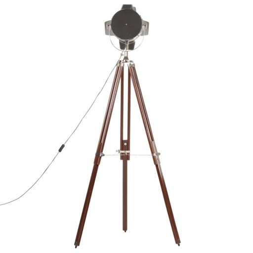 Odchylany, obrotowy, stalowy abażur ze srebrnym wykończeniem rozprasza ciepłe i nastrojowe światło. Solidne nogi wykonano z litego drewna mango o brązowym wykończeniu, zapewniającym stabilne ustawienie. Dodatkowo wysokość lampy można regulować zależnie od potrzeb, w zakresie od 120 do 180 cm. Lampa w stylu Hollywood jest łatwa w montażu.