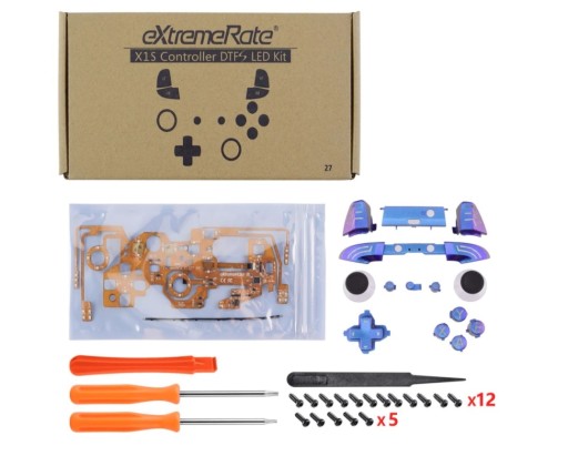 ▪ Jest t zestaw do personalizacji ledów w kontrolerze do Xbox One X S.Zestaw nie aiwera kontrolera.Proces instalacji wymaga wysokich umiejętności lutowania.Jest 10 kolorów LED do wyboru.Opakowanie może byc uszkodzone.