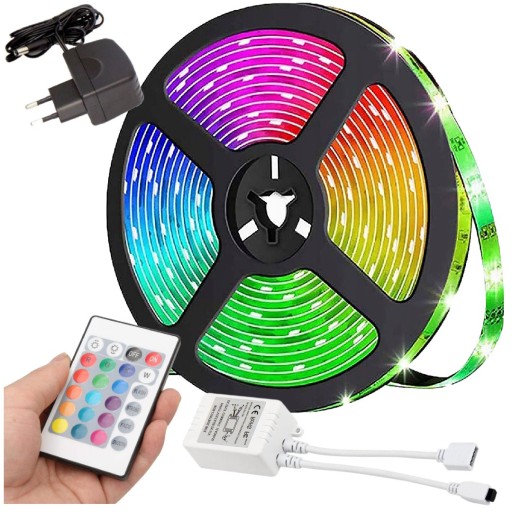 TAŚMA LED RGB 5M + PILOT ZASILACZ WODOODPORNA IP67
