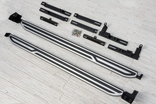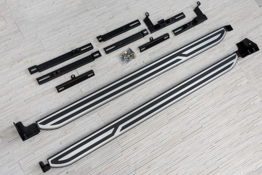 Zestaw zawiera komplet stopni bocznych (prawy i lewy), elementy montażowe oraz instrukcję. Progi montowane są na fabrycznych punktach montażowych. Montaż stopni nie wymagają wiercenia dodatkowych otworów! Zalecamy profesjonalny montaż w warsztacie (z doświadczenia wiemy że najlepiej skorzystać z usług zakładu lakierniczego lub blacharskiego - to właśnie tam najczęściej wykonywane są instalacje listew, dokładek oraz stopni, więc montaż dla tych zakładów jest czynnością intuicyjną).