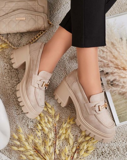 BEŻOWE MOKASYNY DAMSKIE NA SŁUPKU TIVILI