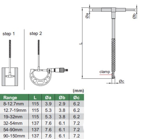- Średnicówki - 8-12.7mm, 12.7-19mm, 19-32mm, 32-54mm, 54-90mm, 90-150mm