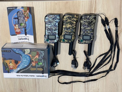 Inspireyes Walkie Talkie dziecięce ładowanie, 48 godzin czasu pracy, 8 kanałów, 2-drożne radio, prezent dla chłopców i dziewczynek, wędrówki na świeżym powietrzu, kemping, 3-12 lat, zestaw 3 szt