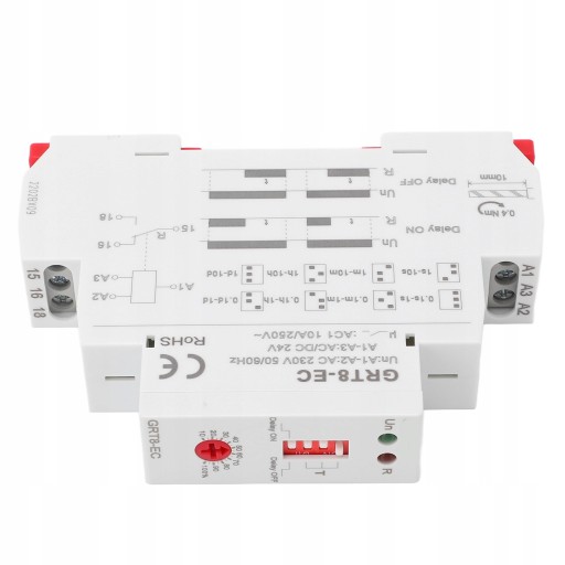 4. ZAKRES OPÓŹNIENIA: Dzięki czerwonemu okrągłemu pokrętłu zakres opóźnienia można regulować w zakresie od 0,1 sekundy do 10 dni i można go obsługiwać zgodnie z potrzebami.