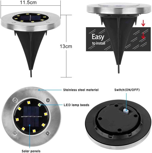 【Zasilana energią słoneczną】Ta tarcza solarna LED nie wymaga prądu. Dzięki 8 diodom LED jasność wynosi do 40 lm, jaśniejsza niż podobne lampy dostępne na rynku, diody LED wytrzymują do 100 000 godzin. Solarne światła ścieżek są bezprzewodowe, nierdzewne, wodoszczelne i automatyczne.