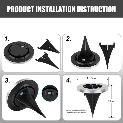 【Łatwa instalacja】: lampy solarne nie wymagają dodatkowego drutu, każda lampa podłogowa ma 4 kolce, wystarczy wcisnąć słupki z tworzywa sztucznego do ziemi. Łatwa obsługa.