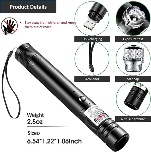 - Wysokiej jakości materiały: ta wysokiej jakości latarka wykonana jest ze stopu aluminium lotniczego, najnowszej technologii optycznej i mikroelektroniki. Zapewnia bardzo wyraźne i dokładne wskazanie punktu nawet w świetle dziennym oraz wyraźną wiązkę światła w ciemnym lub słabym świetle.